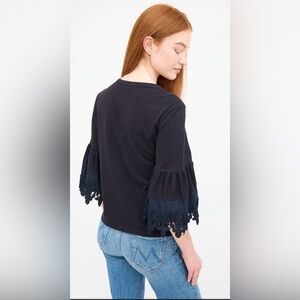 Chloé Ultramarine Blouse. It features long balloon sleeves with an embroidered lace trim and a crew neck.