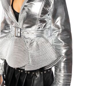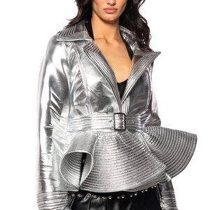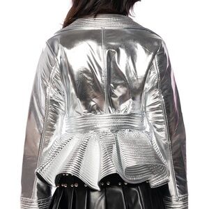 AKIRA Metallic Silver Peplum Jacket
