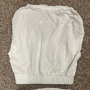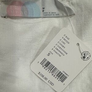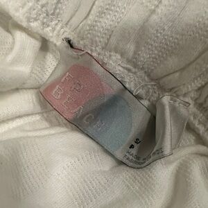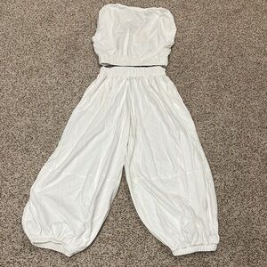 NWT White two-piece set from FP Beach (Free People). V-neck cropped top and balloon pants. Beautiful subtle textured square print. 100% cotton. Versatile - can be worn at the beach, or for a night out! Can fit a small or medium. Smoke-free home.