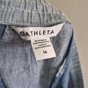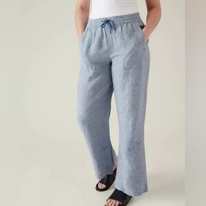 Athleta Retreat Linen High Rise Wide Leg Pants Chambray Blue Size 16