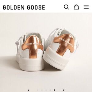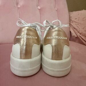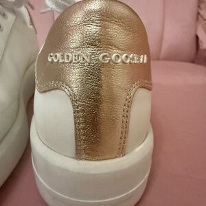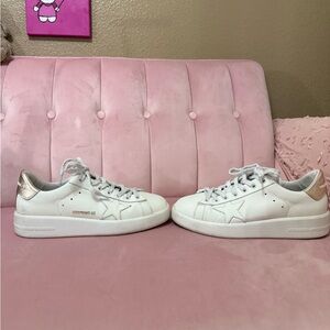 Golden Goose PureStar sneakers with a sleek white base and bold bronze metallic heel. Gently loved, worn only a few times. Size 38.