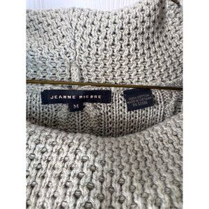 Cable Knit Sage Green Sweater With Cowl Neck Jeanne Pierre M 100% Cotton