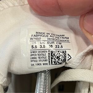 White canvas high-tops with red and blue details. Features classic Converse logo.