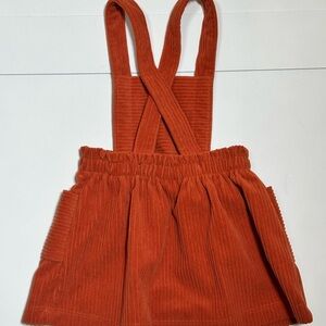 Adorable orange/brown corduroy overall dress from Wonder Nation. Features adjustable straps and front pockets. Ideal for active play and special occasions. Excellent pre-owned condition. Size 12 months.