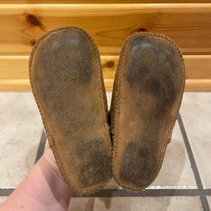 Soft, suede UGG crib shoes. Tagged as size (infant) large, converts to size 6-7 per UGG website. Some wear on soles and toes as pictured.