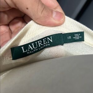 Ralph Lauren Cream Long Sleeve part silk V-Neck Top
