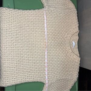"Stay cozy in this beautiful Sage The Label chunky knit sweater. Features a classic crew neck and a thick, soft weave perfect for layering. The neutral cream/tan color makes it easy to style with denim or skirts for a boho-chic look. 100% Acrylic, very soft and not itchy."