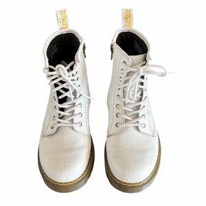 A junior-sized reproduction of the 1460 8-eye boot, offering a sturdy, yet flexible sole combined with soft, durable white pebble leather.
