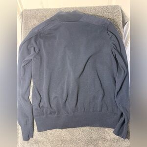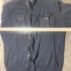 Stay warm and stylish with this navy sweater featuring convenient front pockets. Perfect for any casual outing.
