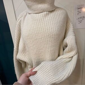 H&M Oversized Cream Chunky Knit Turtleneck Sweater Ribbed Winter Pullover XL
