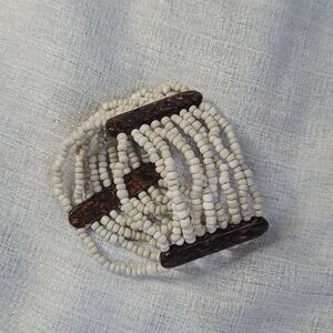 This elegant white beaded bracelet adds a touch of sophistication to any outfit. Perfect for any occasion.
