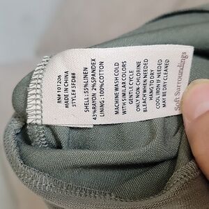 Soft Surrounding Dress Olive Green Linen Blend Midi Stretch Transitional 1X XLP