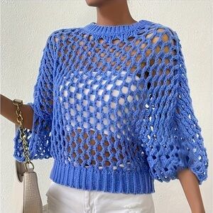 Chic light blue open knit design. Ideal for casual wear.