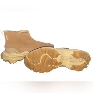 Stylish tan ankle boots with a chunky sole. Perfect for a trendy look.