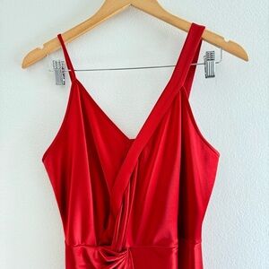 T by Alexander Wang sleeveless dress. Fluid satin and knot-wrap detailing at the front lends subtle visual intrigue to the design.