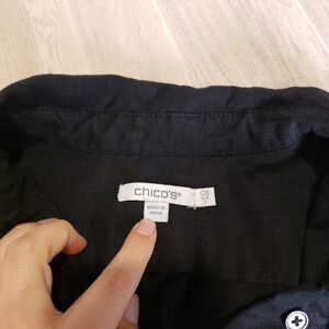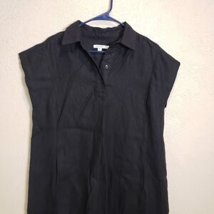 Chico’s Black Linen Shirt Dress Sz .5 Button Front Collared Short Sleeve Midi