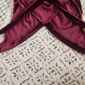Victoria's Secret Gold Label Red Wine Velvet Slip Dress Asymetrical Raw Hem S/M