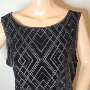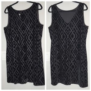 NWT WHBM Velvet Burnout Jacquard Geo Black Sleeveless Shift Dress Size XL