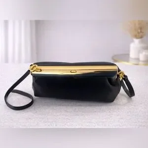 Black Designer-Inspired Crossbody Handbag | Gold Frame Clutch Purse