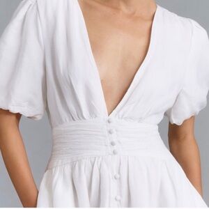 Anthropologie Katerina Button Front Puff Sleeve Mini Dress White Size: XS