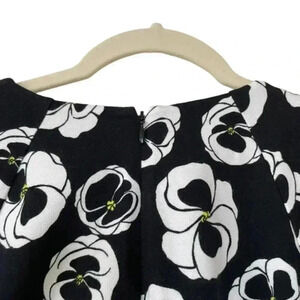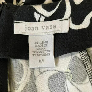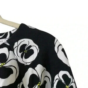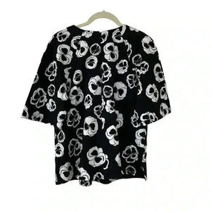 Joan Vass Black White Floral Top Size Medium Half Sleeves Crewneck Classic