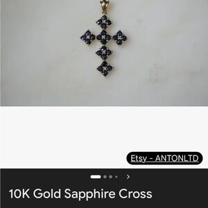 Elegant 10K gold cross pendant featuring stunning sapphire stones. Perfect for adding a touch of sophistication to any outfit.