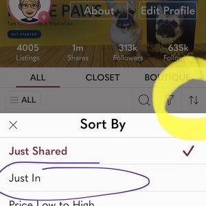 3) filter to “AVAILABLE” (so you don’t accidentally share sold items or NFS items such as “dropping soon”)