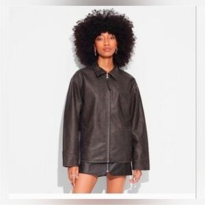 Very oversized leather jacket. Size medium but fits more like an XL. Only worn twice!