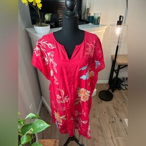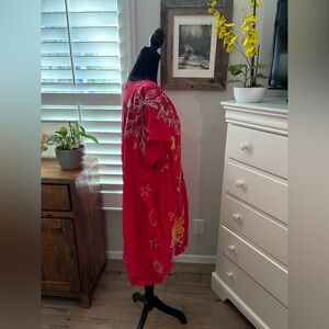 Bold and colorful, the Playa Dress is intricately embellished with delicate placement embroidery. Crafted from a lightweight, breathable fabric, this dress features a split V-neck and relaxed Dolman sleeves and is finished with a slip for additional coverage. Pair with bold flats or fashion sneakers for a delightful weekend look.
