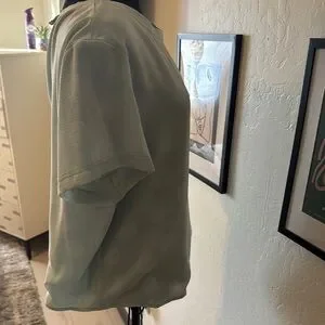 Donna Karan Green Blouse with Relaxed Tie Front