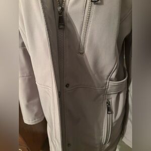 Great condition water resistant coat. Zipper and button front. Super Warm and hooded. Removable hood