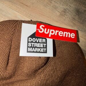 Stylish brown hat with paisley patch. Iconic Supreme branding. Ideal for casual wear.