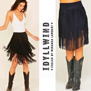 Idyllwind Faux Suede Black Fringe Mini Skirt Size XL