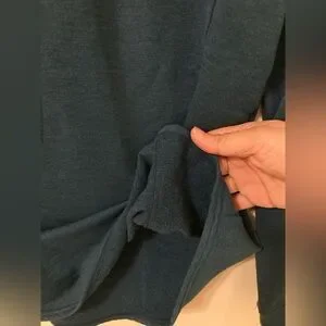 Stylish teal long sleeve top with a cozy drawstring funnel neck. Feels like light fleece on the inside.