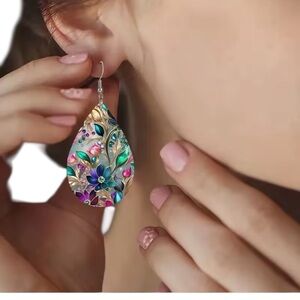 Enhance your style with these stunning floral gemstone teardrop earrings. Featuring a vibrant multicolor design, these earrings are perfect for any occasion.