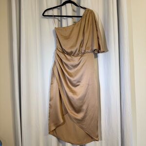 Sincerely Jules Champagne Satin One Shoulder Draped Dress Women’s Medium