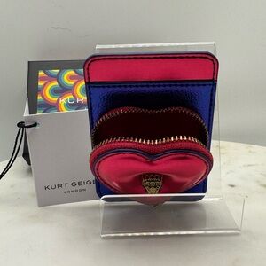 Kurt Geiger Metallic Pink and Blue Heart Pouch Phone Case & Box BNIB FULL INCL