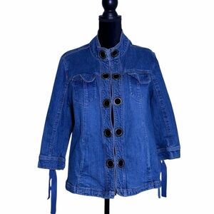 3/4 Sleeve Denim Jacket with Eyelets and Ties L A L live a little Sz 1X
