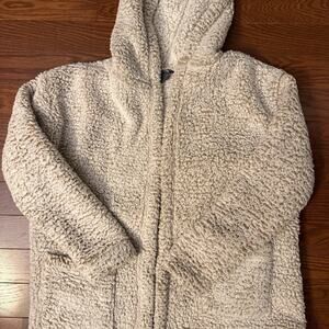 Eddie Bauer Fireside Plush Ultra Soft Hooded Open Front Sherpa Cardigan Size L