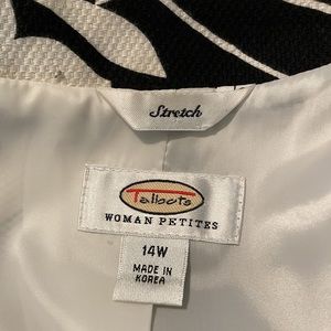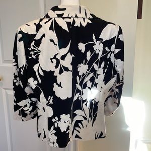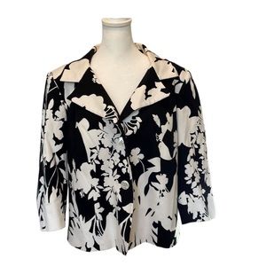 Talbots black and white floral print short jacket. Cotton pique. 14WP. VGUC