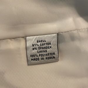 Cotton with spandex for stretch. Gently worn. Good condition.
