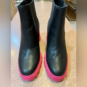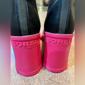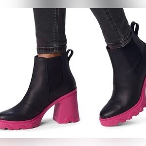 Women's Sorel 10 Brex Heel Chelsea Boots Black With Pink Chunky Rubber Heel
