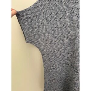 J Jill gray knit sweater top V-neck and short sleeves open knit pattern.