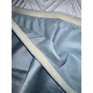 This piece features a soft light blue satin-like fabric with delicate lace trim and floral lace cutout details along the hem, showcasing classic Dior craftsmanship. Elastic waistband for comfort.