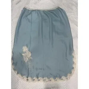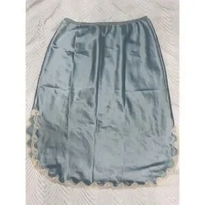 Vintage Christian Dior Slip Skirt Light Blue Lace Trim ILGWU USA Made M