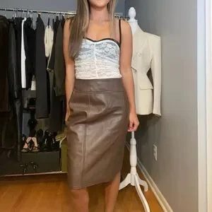 Elevate your wardrobe with this chic brown leather pencil skirt. Perfect for a polished and modern look.