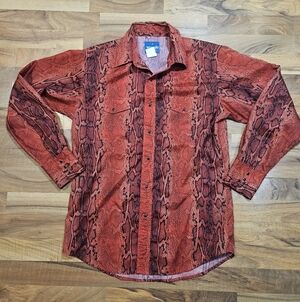 Wrangler Snakeskin Western Shirt Men’s M Red Black Pearl Snap Vintage