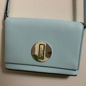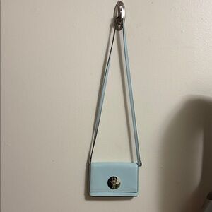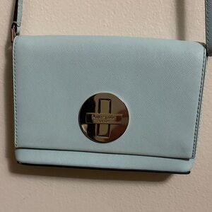 Chic light blue crossbody bag with a stylish clasp. Ideal for everyday wear.