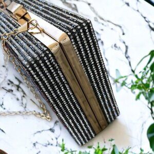 Women's NWOT Retro Radio Shape Crossbody Shoulder Chain Bag Rhinestone Metal