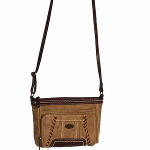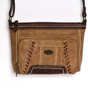 B.O.C. Born Concepts Brown Shoulder Handbag Whip Stitching Faux Leather Suede. Cute Western Crossbody. In Saddle Brown color, with whip stitching. Great Neutral Choice that goes with any casual or western outfit. Lots of compartments. Faux Leather and Suede, Adjustable strap. From my nonsmoking home.